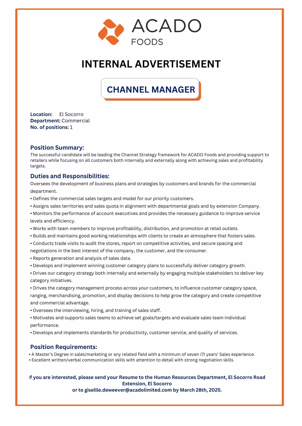 WORK WITH US Channel ManagerMar 17, 2025 "*" indicates required fields FacebookThis field is for validation purposes and should be left unchanged.Name* First Last Email* Phone*Choose your field* Administrative Finance Merchandising Warehouse Marketing Accounting HR Upload a VideoMax. file size: 2 GB. Tell us a little bit about yourself with a 5 minutes or less video on why YOU would be perfect for our dynamic team!Add your CV*Max. file size: 2 GB. Add your Cover Letter*Max. file size: 2 GB. CAPTCHA